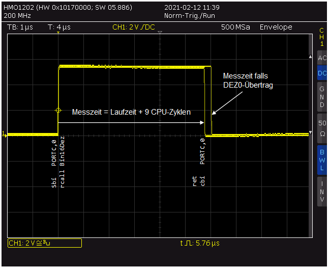Mit gutem Auge erkennt man zwischen der minimalen und maximalen Messzeit noch zwei weitere Flanken, die zu dieser weiteren Abfrage bei DEZ0-Überlauf gehören: